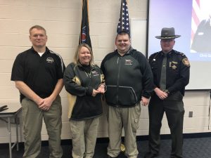 The Guernsey County Sheriff’s Office has awarded Dispatcher Chris Galbreath with the Office’s first Dispatcher of the Quarter Award. The award is issued to those dispatchers that achieve excellence in the performance of their duties. Chris Galbreath is a 11 year veteran with the office. “Chris excels in every task given to her and is very professional and courteous with the public,” says Dispatch Supervisor Jeff Hannon. Chris is a John Glenn High School graduate and is a member of the Cassell Station Volunteer Fire Department and is also a member of the VFW Post 2901. Chris’s hobbies are scrap booking, hunting and camping. Her biggest interest is spending time with her family. Sheriff Paden states, “We are proud to have employees who are dedicated to providing excellent service and meeting the needs of Guernsey County citizens.”