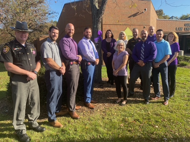 In recognition of October being Domestic Violence Awareness Month, the Guernsey County Sheriff’s Office is pictured with Victim Advocates from The Haven Hope. Purple ribbons are attached to multiple trees at the Guernsey County Sheriff’s Office as a reminder. Sheriff Jeffrey D. Paden stated, “I am honored to work with such a professional group of advocates. It is absolutely critical to use victim advocates through the court process to achieve successful prosecution.” The Haven of Hope works collaboratively with the Guernsey County Sheriff’s Office, even arriving on scene with detectives from the Guernsey County Sheriff’s Office.